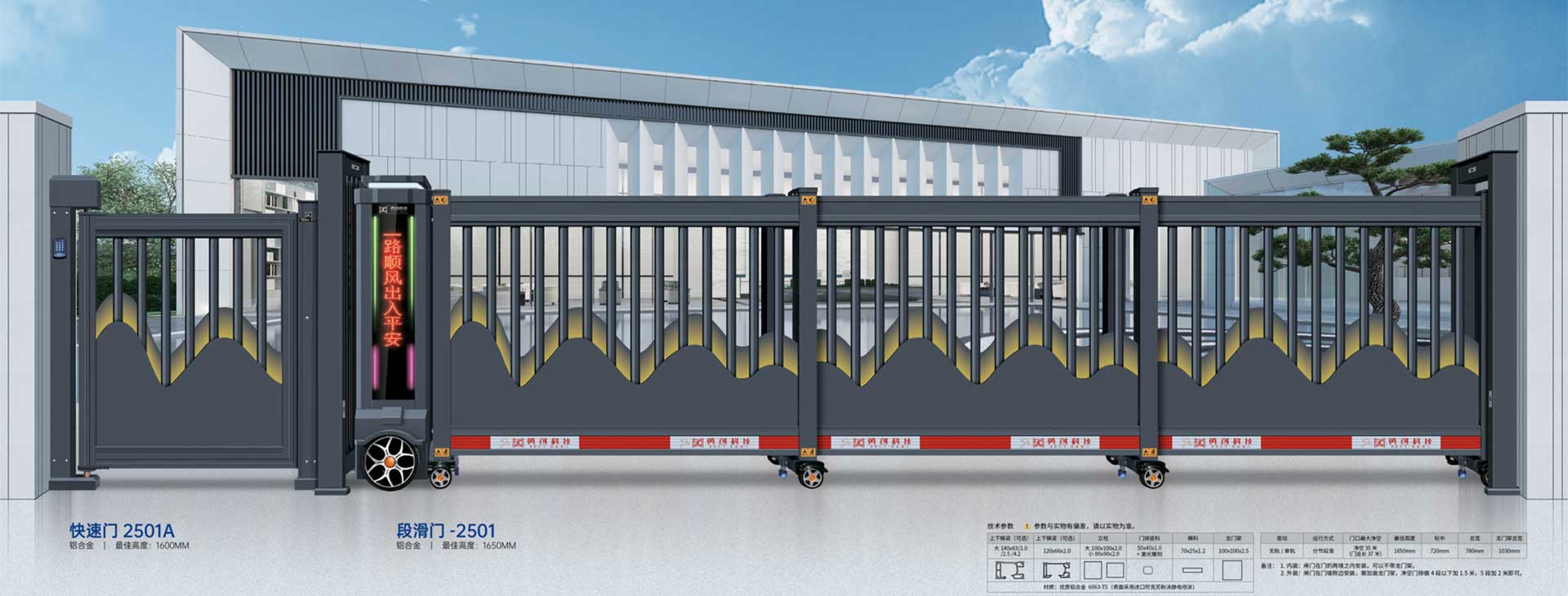 勇創門業科技有限公司是集科研、開發、生產、銷售、服務為一體的現代化大型電動門生產企業。公司創立于2006年,多年來深耕各類電動大門的生產、施工與銷售的一體化,產品、服務等方面始終保持在中國業界連續9年榮獲“中國伸縮門十大品牌”。目前勇創科技銷售服務網絡遍布全國,得到了眾多用戶的認可和贊譽。